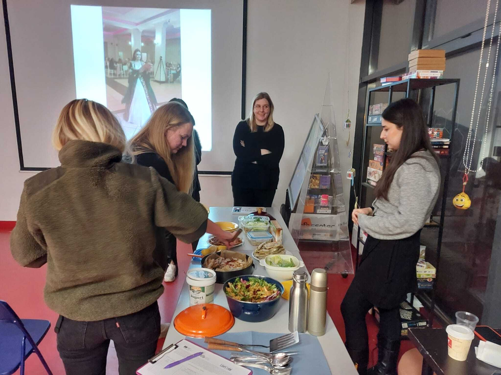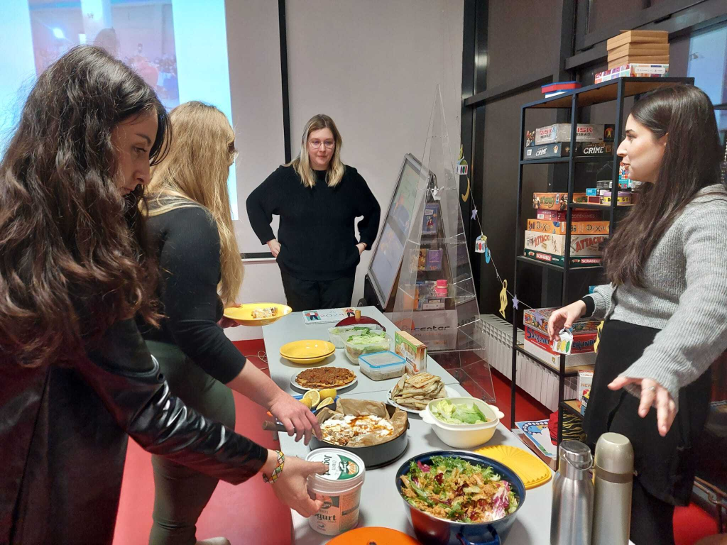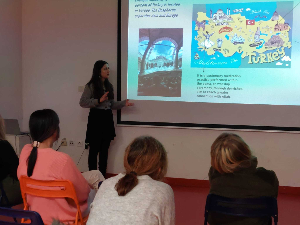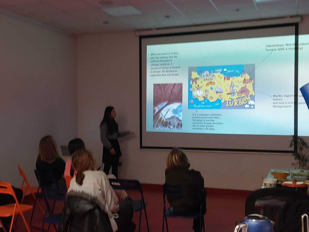 Didem, Doga i Mina, mlade volonterke koje borave u Karlovcu do srpnja ove godine, u sklopu interkulturalne večeri pripremile su kratku prezentaciju o svojoj državi Turskoj te gradu Istambulu, od kuda i dolaze, te tradicionalna jela i slastice iz Turske.